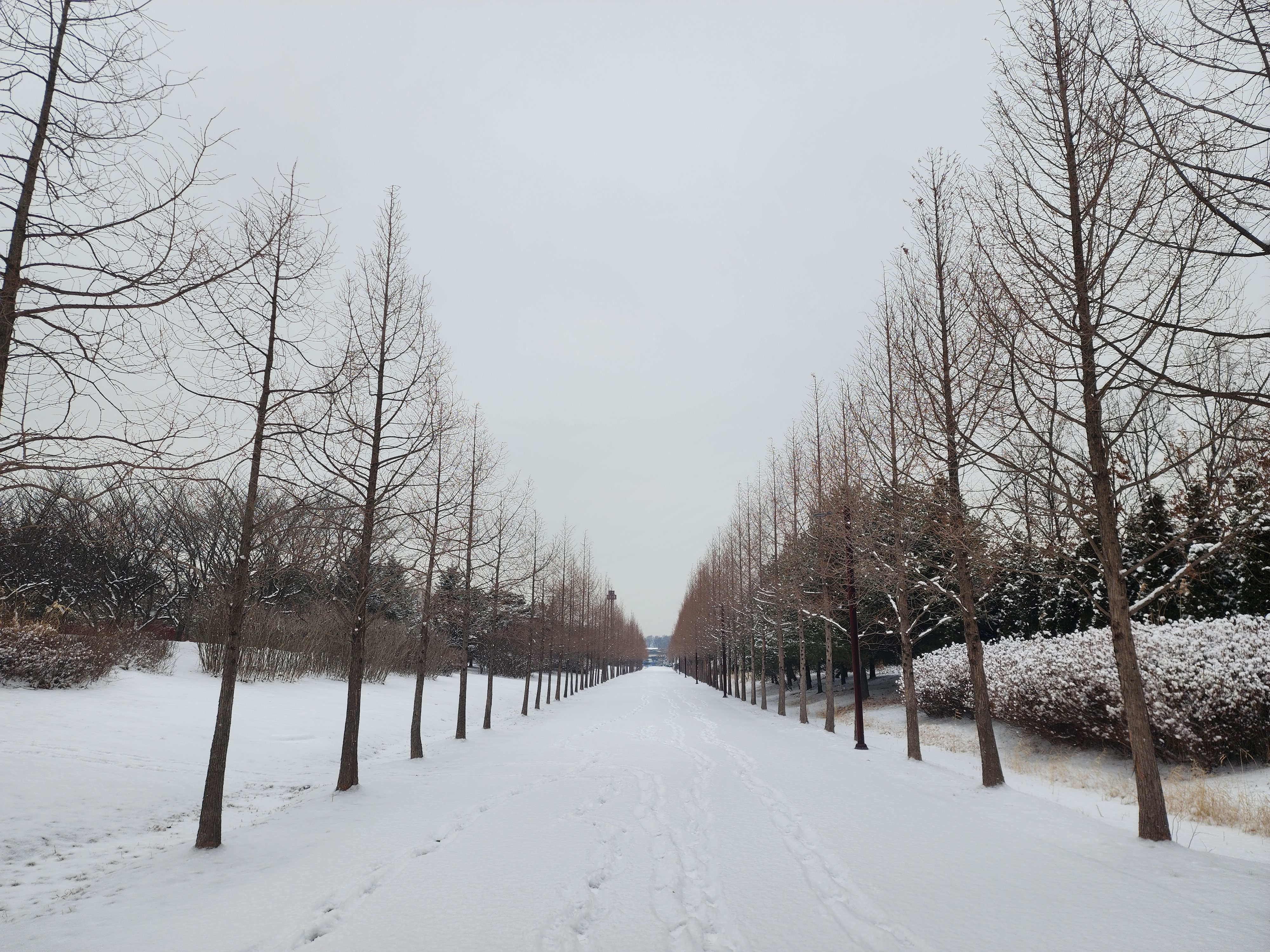 메타세쿼이아 길에 눈이 쌓이고 누구의 발자국도 없을 때 그 길을 걸어 보기에도 좋습니다.